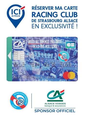 Découvrez la carte Racing Club de Strasbourg Alsace du Crédit Agricole Alsace Vosges, une carte de paiement et de retrait internationale Mastercard disposant de plafonds élevés pour vous permettre de réaliser des retraits d’argent et de régler vos achats de biens ou de prestations de services en face à face ou à distance, en France comme à l’étranger, tout en disposant de garanties d’assistance et d’assurance étendues.