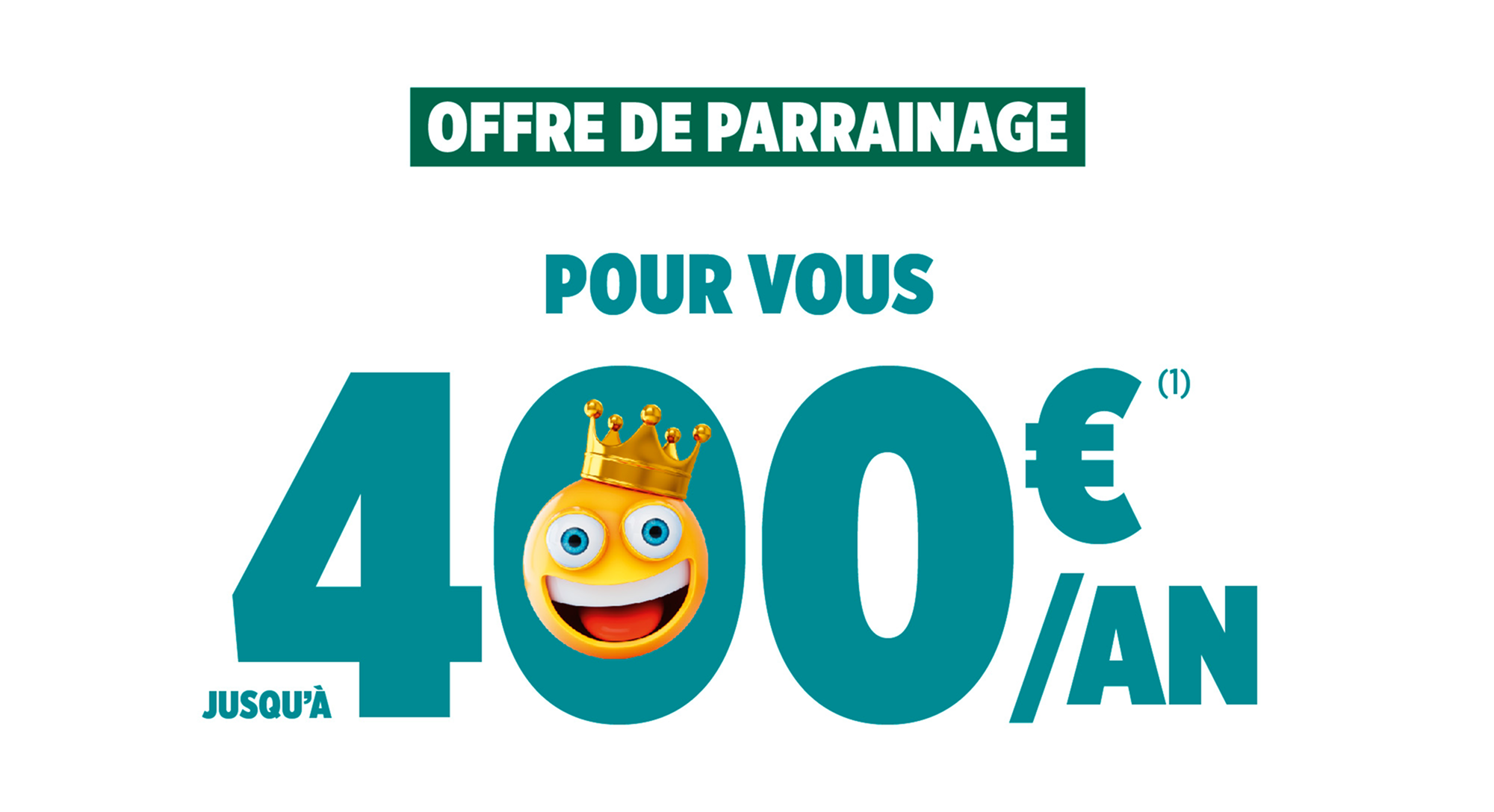 Jusqu'à 400€/an pour vous en nous recommandant à vos proches !