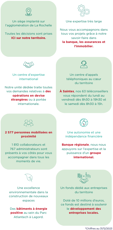 Plus que jamais, nous revendiquons notre attachement et notre ancrage au territoire, par le maintien de nos agences dans les zones urbaines et rurales, la présence en proximité de nos plus de 1810 collaborateurs et en accompagnant les initiatives locales.