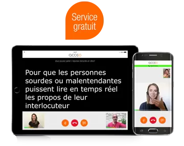 Vous avez une baisse ou gêne auditive ? Vous êtes malentendant ou sourd et souhaitez vous exprimer oralement ? Parlez directement à votre interlocuteur (et non par tchat), ses propos sont écrits instantanément sur votre écran par un opérateur Acceo.