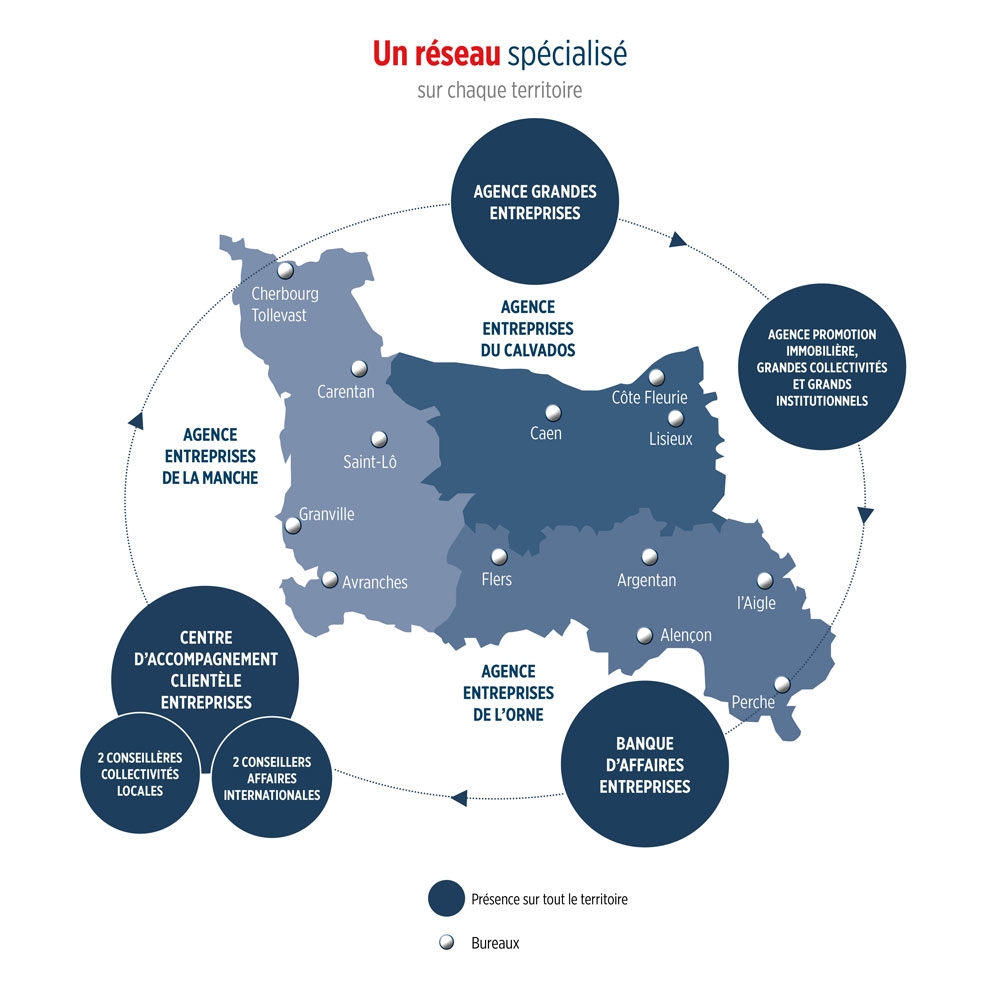 NOTRE RÉSEAU ENTREPRISES, INSTITUTIONNELS ET COLLECTIVITÉS PUBLIQUES RÉPARTI SUR TOUT LE TERRITOIRE DU CRÉDIT AGRICOLE NORMANDIE